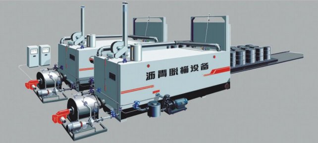 我公司研制生产的沥青脱桶设备用于桶装沥青的脱桶与升温,并具有脱水与自动清渣功能该项技术已达到国际**水平。沥青脱用设备可分为两大类,燃油直热复合加热推进器和借助导热油炉为热源,还有借助导热油加热,托盘式和链条式。